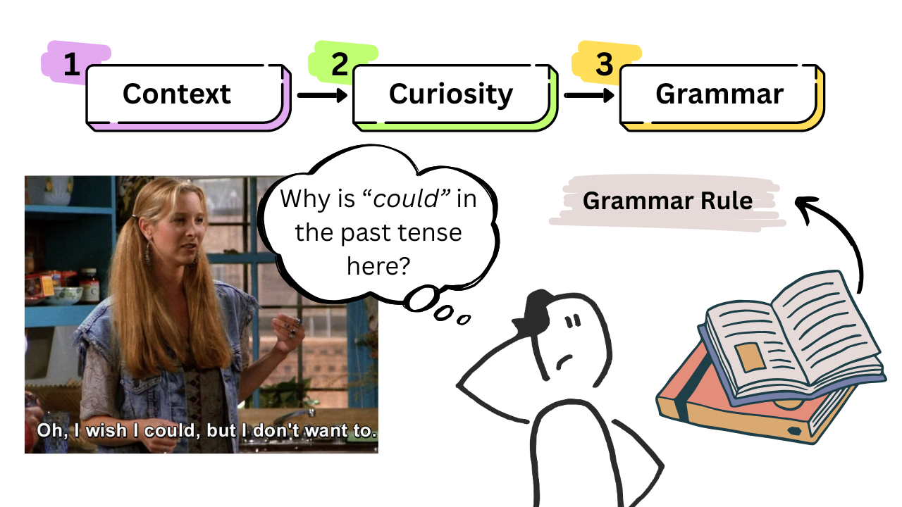 Traditional textbooks usually make grammar the backbone of your studies. It’s a logical pathway that guides you from easier things to more complex ones, but it doesn’t always result in meaningful progress. Don’t get me wrong—grammar is essential in language learning. But grammar doesn’t exist in a vacuum. Context is key for our brains to actually remember grammar. That’s why, for many learners, it’s easier when the grammar explanations not preceed but follow contextual learning.
